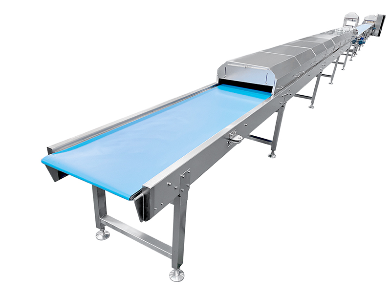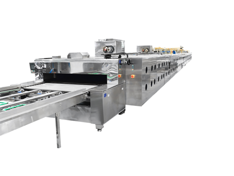 في هذه المرحلة، يتحول الكيك الجاهزة من مرحلة التحميص إلى مرحلة التعبئة والتغليف. تركب مصابيح الأشعة فوق البنفسجية عالية الكثافة فوق وعلى جانبي السيور الناقلة لتعقيم أسطح المنتج والسيور الناقلة على حد سواء، وذلك بتعطيل الحمض النووي للميكروبات. يمنع هذا بشكل فعال نمو الميكروبات، ويضمن عملية تبريد نظيفة وصحية، ويحافظ على رطوبة المنتج وقوامه، ويطيل مدة صلاحيته بشكل ملحوظ.