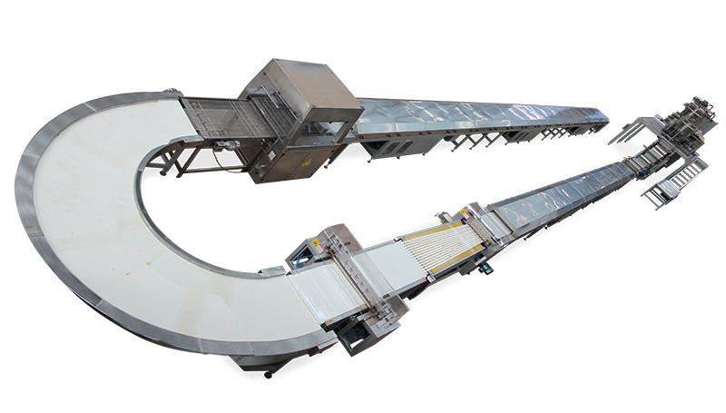 خط إنتاج السنيكرز مصمم لتصنيع مجموعة واسعة من السكاكر، مثل أصابع الشوكولا، أصابع التوفي، أصابع التويكس، سكاكر الحليب المحشوة، سكاكر التوفي الخ. يقوم خط الإنتاج هذا بتنفيذ عملية التلبيس الثانوي أوتوماتيكيا، مما يحسن قدرة الإنتاج إلى حد كبير.